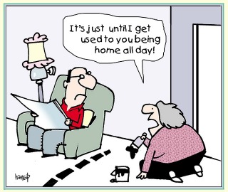 the retired partner’s presence around the house all the time very discommoding